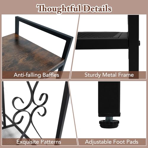 - Ample Storage Capacity: Elevate your space with this multifunctional wine rack, expertly designed to store up to 21 wine bottles and 6 glasses. Besides, the spacious top and mesh bottom offer ample room for tableware, condiments, and so on.