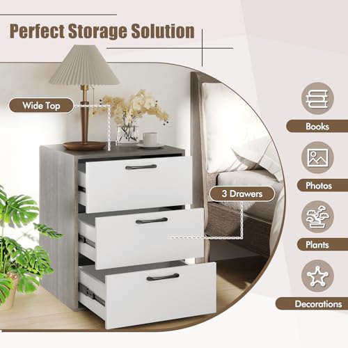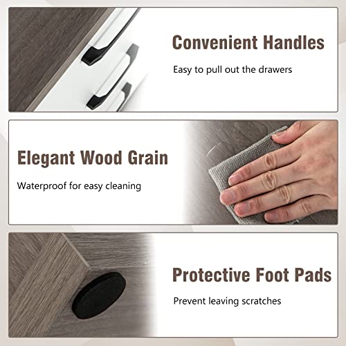 - [Versatility]: Boasting an exquisite blend of stylish wood grain and contemporary white panel, this modern dresser seamlessly complements a wide range of decor styles. With its ample storage capacity, this wood dresser is perfect for an array of settings. Beyond serving as a nightstand, this versatile unit can effortlessly double as a printer stand or sofa side table, adapting to your every need.