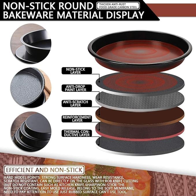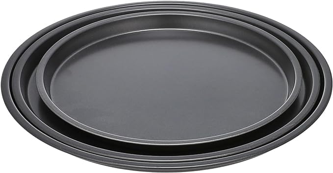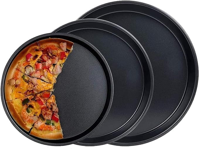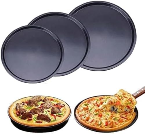 Generic - صينية تقديم بيتزا غير لاصقة من الصلب الكربوني للميكروويف والفرن، 3 قطع بلون أسود (20 سم - 23 سم - 25 سم)