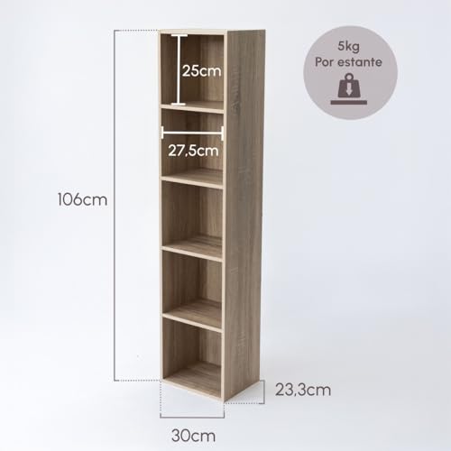 LOLAhome - رف خشبي مكعب للمكتب او متجر الكتب او غرفة النوم او المخزن من لولا هوم (طبيعي، 5 ارفف (132 سم))