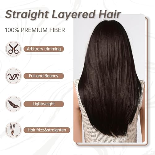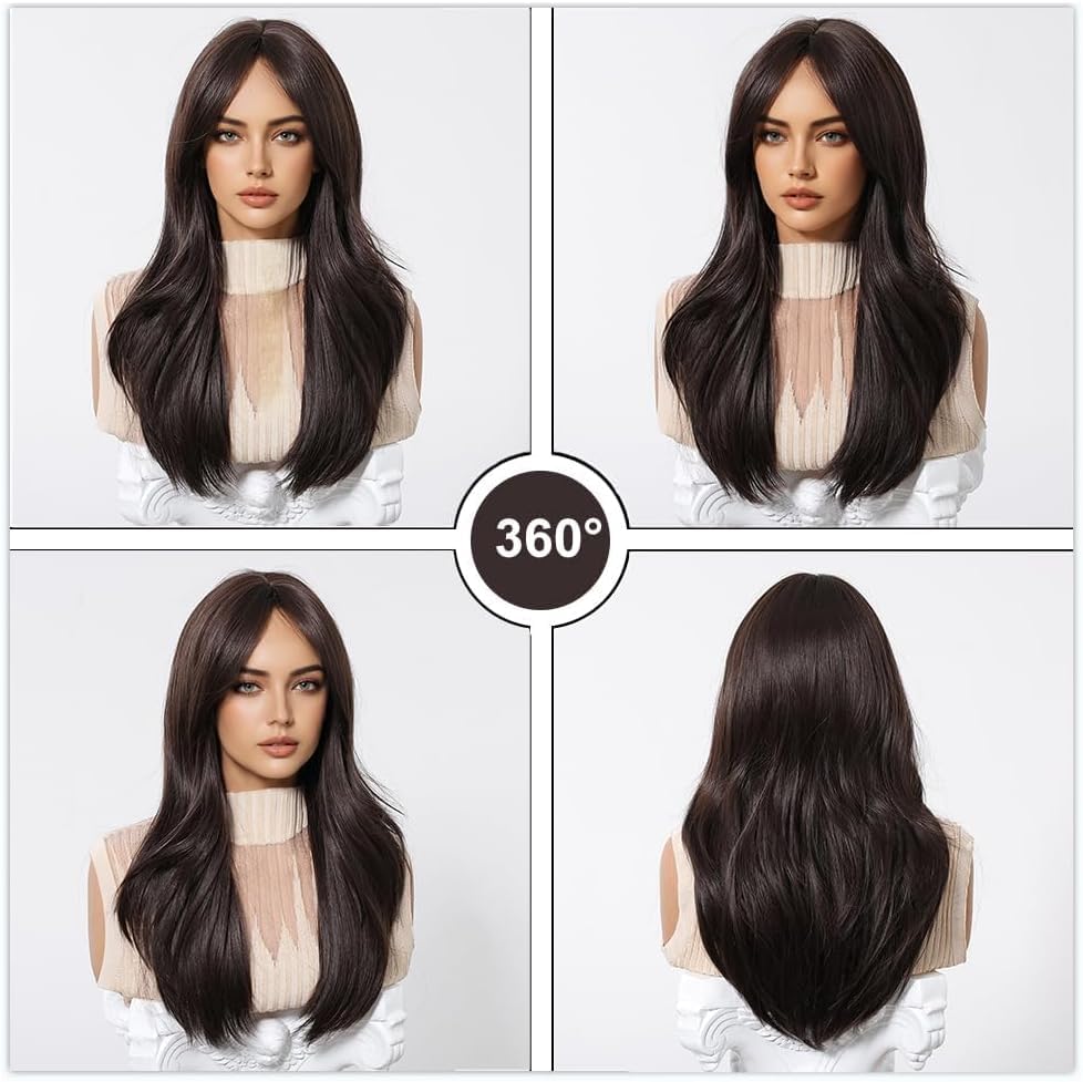 Generic - LONG Body less Wig Shoulder Length Synthetic Wig with Bangs 150% Density Ocean Heat Resistant Synthetic Fiber -less Hair 22 INCH- jw 56 - N8- medium brown