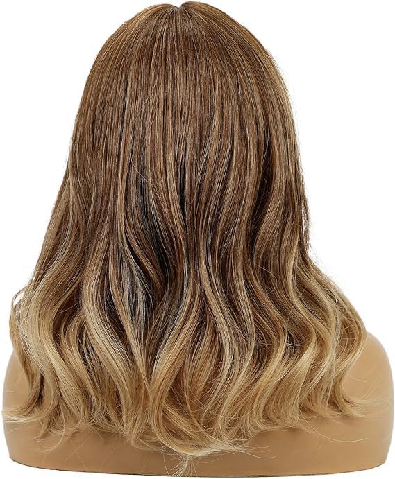Generic - باروكة شعر مستعار طويل مجعد للنساء، شعر صناعي متدرج من البني الى الاشقر، مع غرة