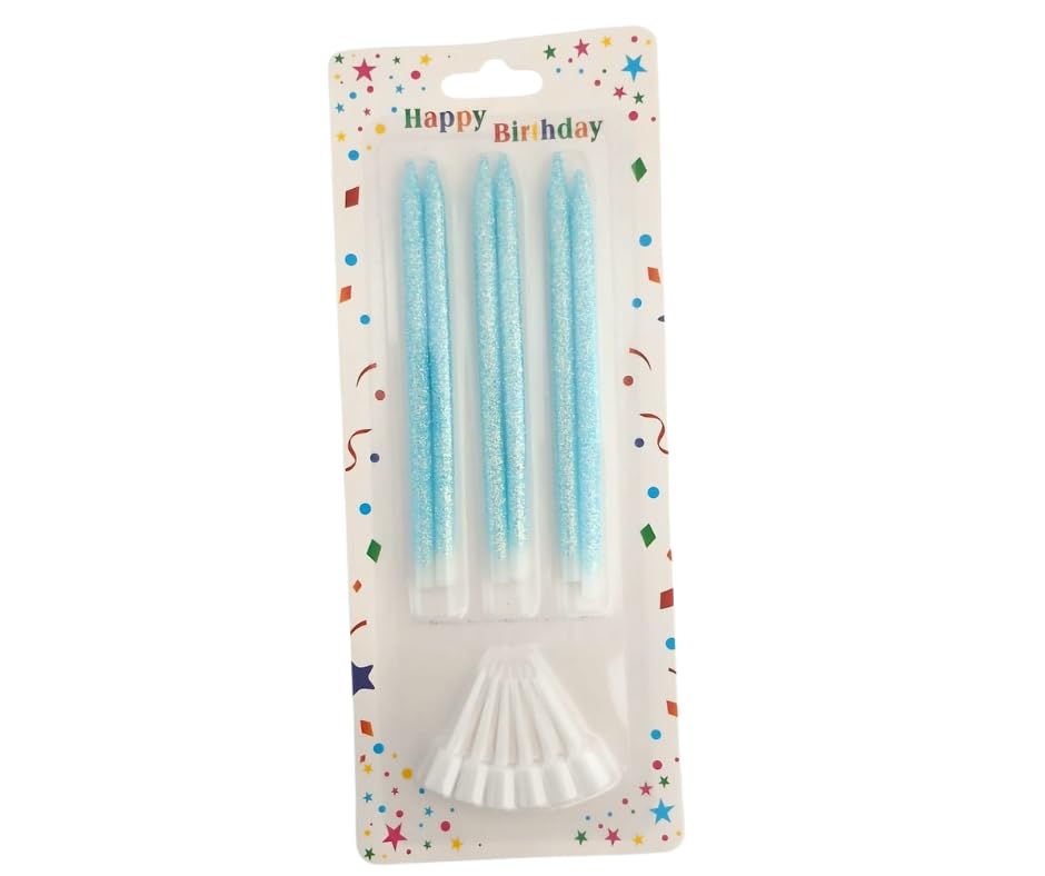 Generic - شموع طويلة لامعة لكعكة عيد الميلاد مع حوامل - شموع حفلات كلاسيكية لكعك اعياد الميلاد والاحتفالات والمناسبات الخاصة (ازرق فاتح)