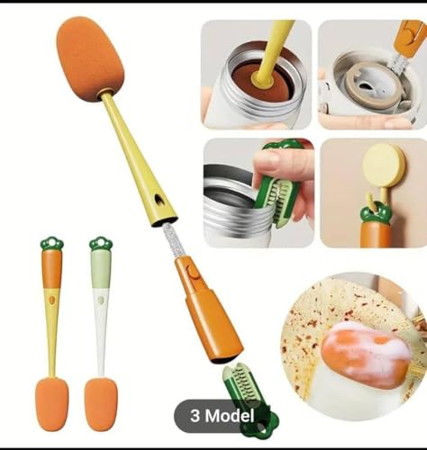 Generic - فرشاة كوب بتصميم جزر بمقبض طويل، فرشاة متعددة الوظائف لتنظيف الزجاجات والفم، 3 في 1 قابلة للفصل وفرشاة تنظيف الحلمة.