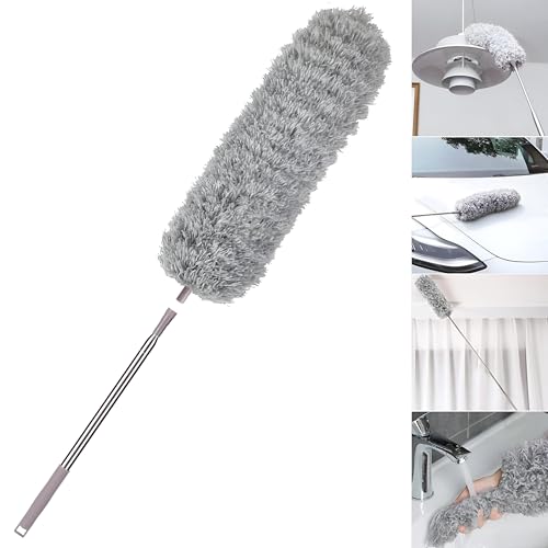 Generic - منفضة غبار بمقبض طويل - منفضة من فولاذ مقاوم للصدأ قابلة للتمدد للأسقف العالية والمناطق التي يصعب الوصول إليها، تصميم قابل للطي لسهولة التخزين، رأس مايكروفايبر قابل للغسل وإعادة الاستخدام