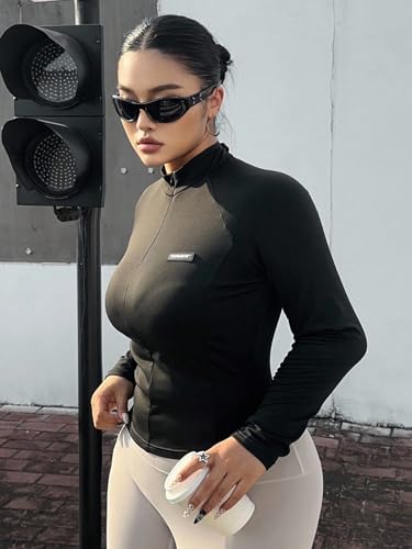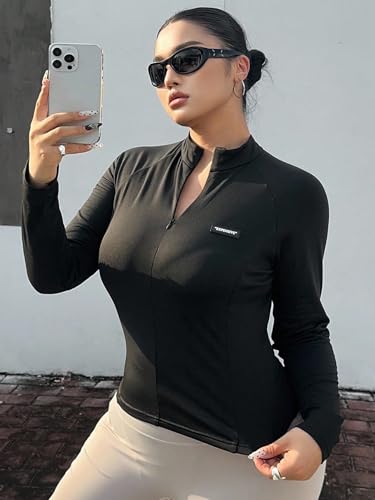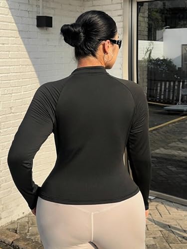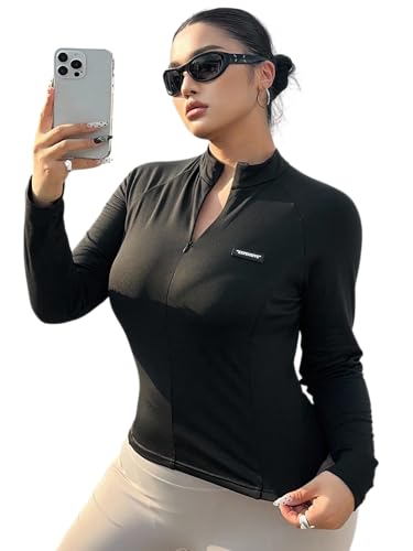 Generic - بلوزة رياضية بأكمام طويلة وربع سحاب، لون أسود، مقاس اكس لارج