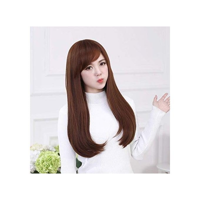 - Long Wig:Brown Long Straight Hair with Fashion Side Bangs for Natural and Sexy Look