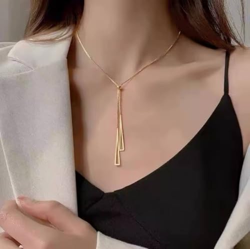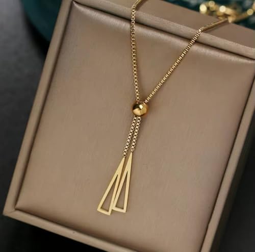 Generic - قلادة طويلة بدلاية مثلثة بشراشيب على شكل حرف Y، سلسلة طويلة قابلة للتعديل للنساء، مجوهرات انيقة طويلة متدلية على شكل مثلث - ذهبي