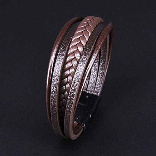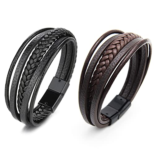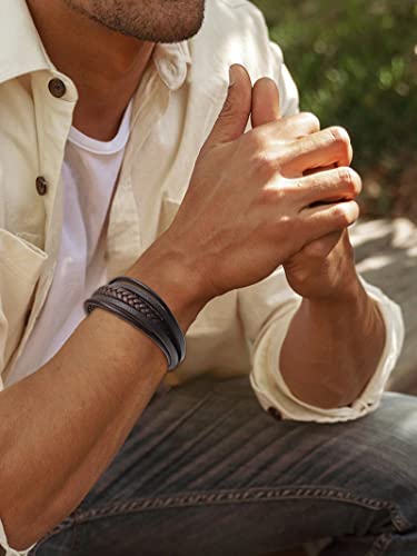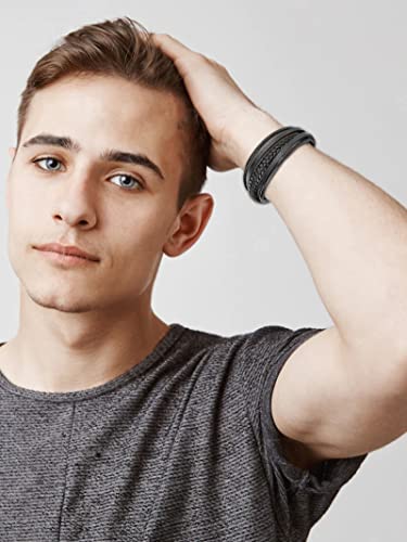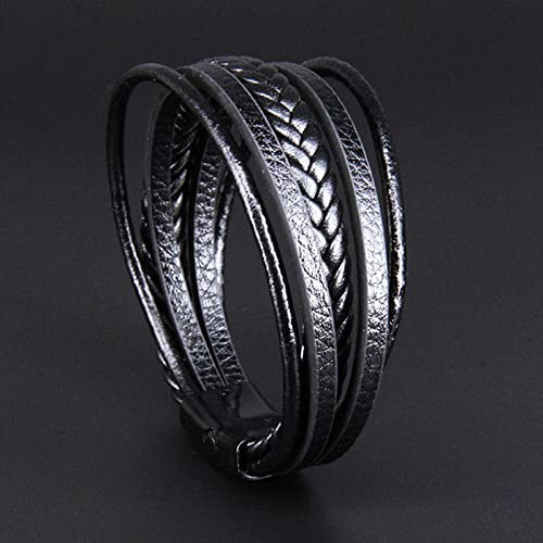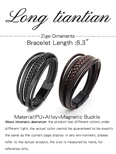Long tiantian - Long tiantian Mens Bracelet Bracelet Leather Cuff Bracelet Black Leather Wrap Bracelet Studded Boho Cuff Bracelets Handmade Splicing Bangle Bracelet Double Strand Leather Bracelet for Men