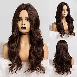 Generic - Long Wavy Synthetic Wig Dark Brown Chocolate Stylish And Fashionable With Middle Part