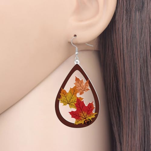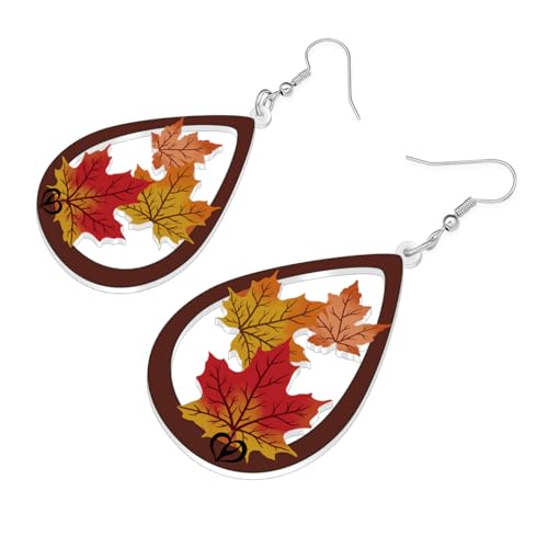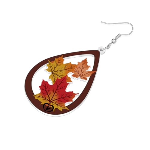 LONYOO - Acrylic Maple Leaf Earrings Orange Autumn Plant Earrings Fall Leaves Jewellery Fall Gifts for Women Mom Nature Lovers