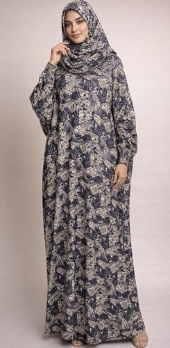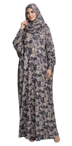 Generic - فستان صلاة فضفاض مريح، مزيج قطن فسكوز ناعم، عباية بطول كامل مع حجاب، طباعة زهور بيج وازرق