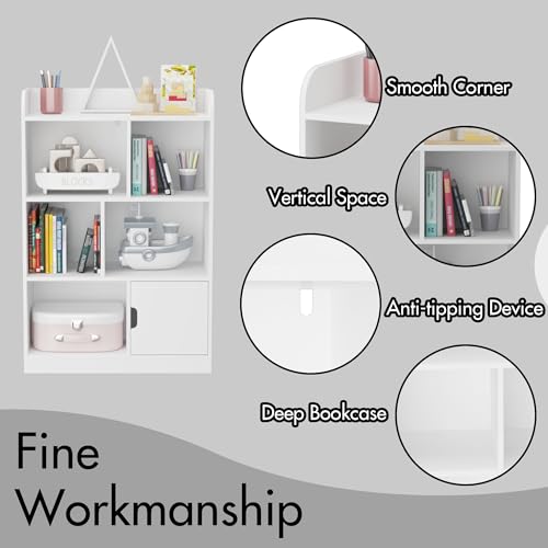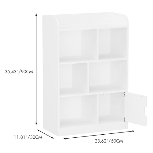 LOPOO - Kids Bookcase, 6-Compartment Bookshelf with Cube Organizer, Freestanding Shelves for Bedroom, Living Room, Office, Closet, School, Easy Assembly, Heavy-Duty MDF, Large Storage Capacity, White