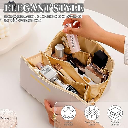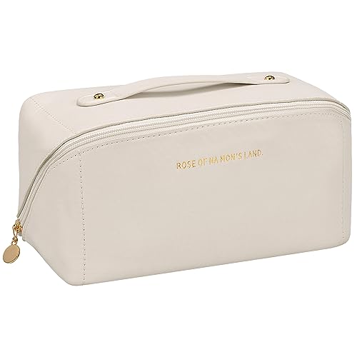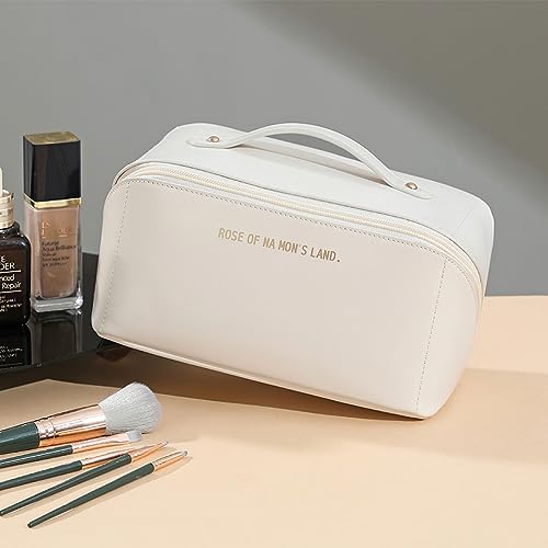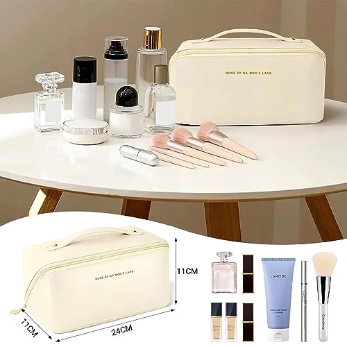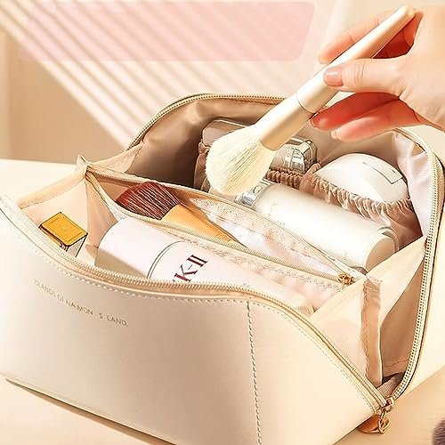 LoQuick - Travel Toiletry Bag, Large Capacity Portable Makeup Bag with Handle and Divider, Waterproof PU Toiletry Storage Bag Organizer Multifunctional (White), beige, Multi-function