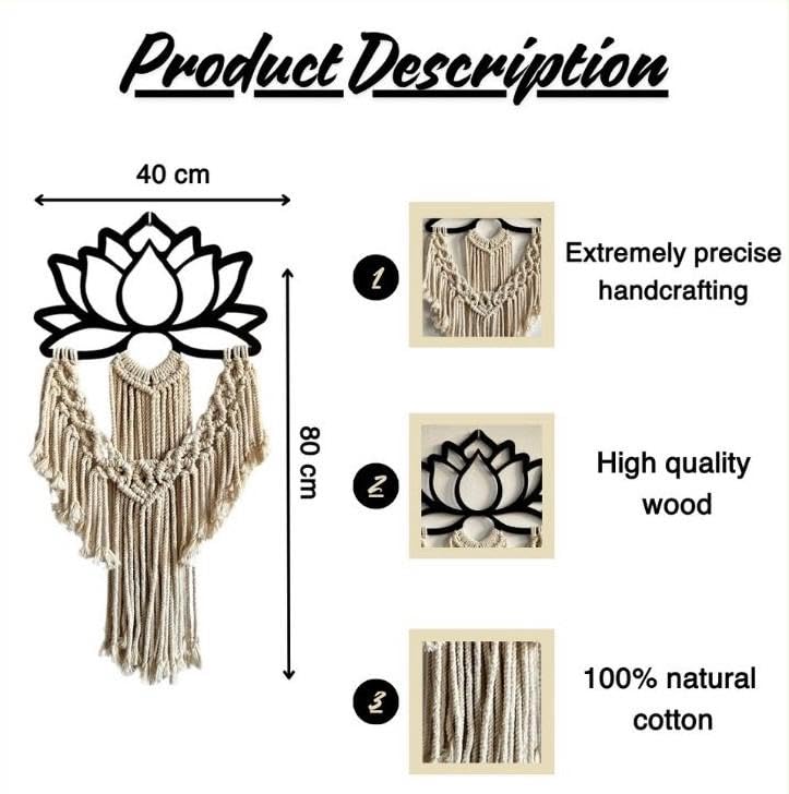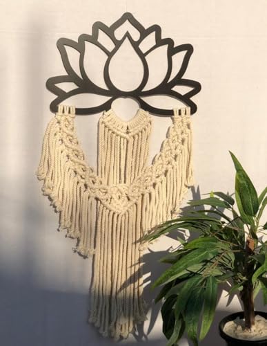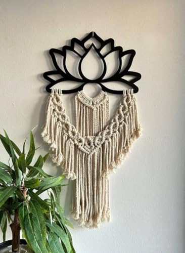 - ELEGANT DESIGN: Handcrafted lotus flower wall hanging featuring a black wood lotus frame with beautiful cream cotton rope macrame tassels for a stunning bohemian aesthetic