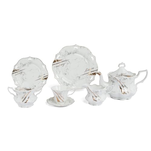 Lotus Porcelain - 9018 Fathi Mahmoud Carmen/White/Dahab Print Tea Set 24-Pieces, No-2