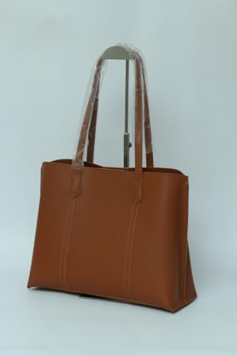 LOU - LOU Classic Faux Leather Tote Bag, Large Capacity Shoulder Handbag, Brown