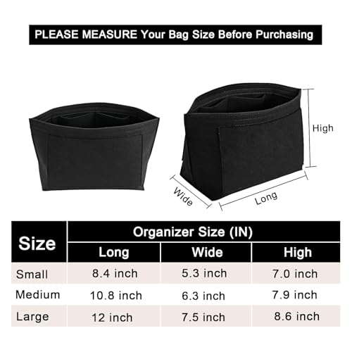 - Size of the felt purse organizer insert - Medium: 10.8" (L)*5.9" (W)*7.9" (H) , suitable for Medium Size of long handle of Le pliage handbag, or similar size Tote Handbag,It will be more suitable if it is LESS than 0.5-1 inches to ensure a perfect fit,Please comfirm your bag size before purchasing again, thanks.