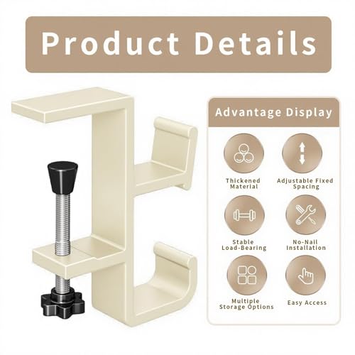 - 【تركيب براغي بدون أدوات】: قم بتجميعها أو إزالتها في أي وقت مع تصميم مطور مثبت بمسامير - لا حاجة للثقب. كل خطاف بوزن 0.09 كجم (0.79 × 3.35 × 4.33 انش) يتم تركيبه بسرعة دون إتلاف الأسطح، مثالي للمكاتب والطاولات وأسطح المناضد.