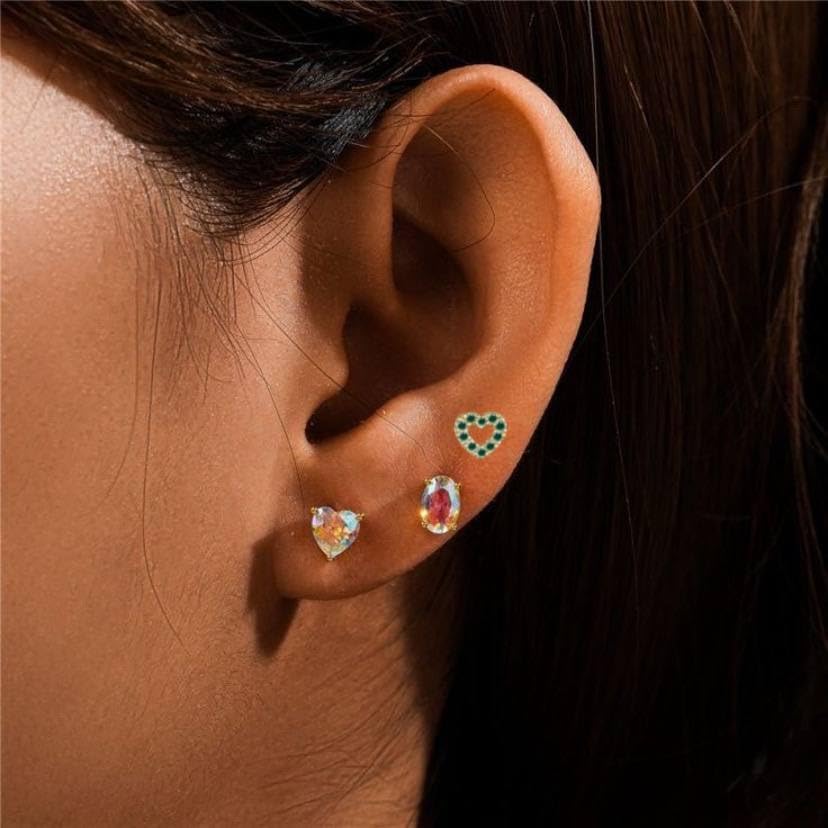 Generic - Love Heart Stud Earring Clips Green Zircon Pendientes Women luxury Fine Jewelry Gift