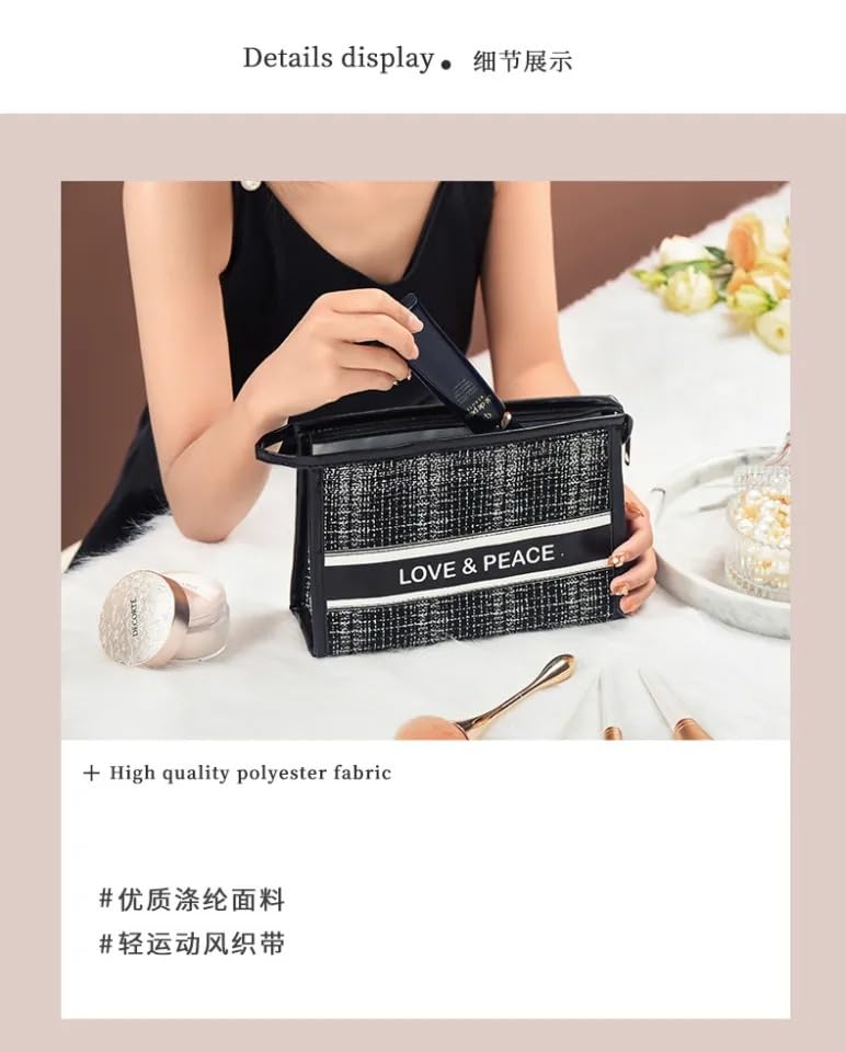 - متعددة الوظائف: تُمكنك شنطة love & peace من تنظيم وحفظ مستلزماتك المتنوعة كالمكياج، المجوهرات، الأدوية، والإكسسوارات.
