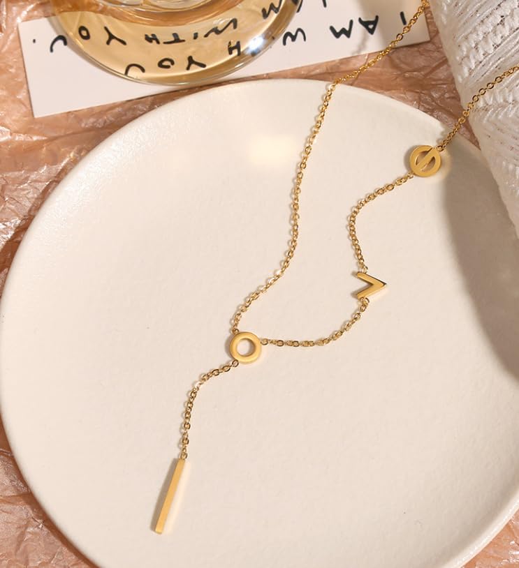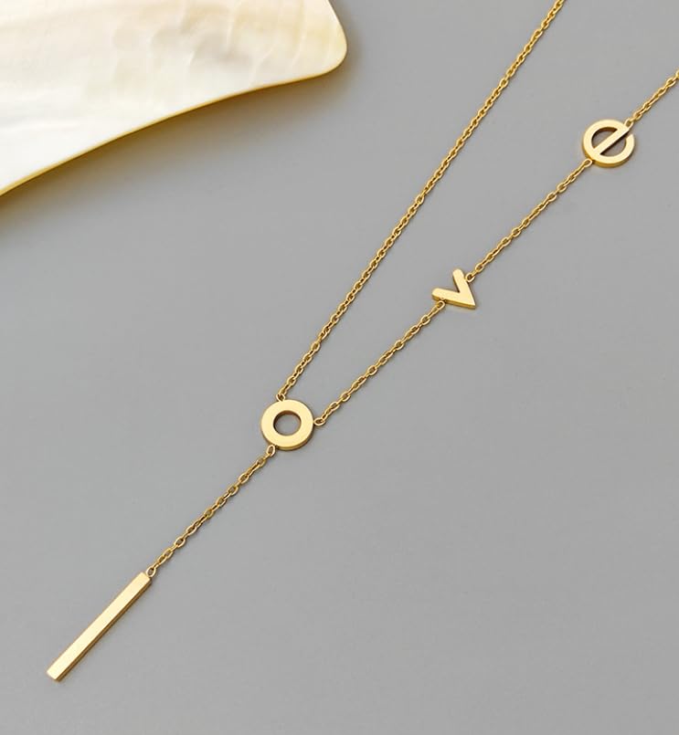 Generic - LOVE" Pendant Necklace for Women Stainless Steel Stainless Steel Gold Plated Geometric Fashion Adjustable Y Chain
