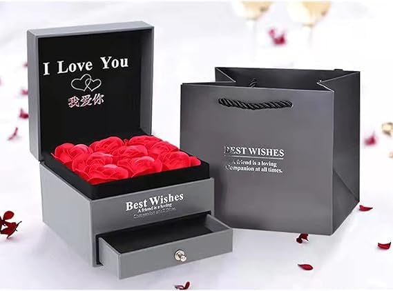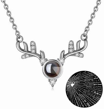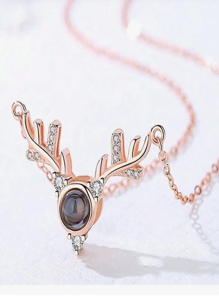 Generic - قلادة بحبك ب100 لغه على شكل غزاله مع صندوق هدايا بتصميم ورد حقيقي محفوظ للنساء