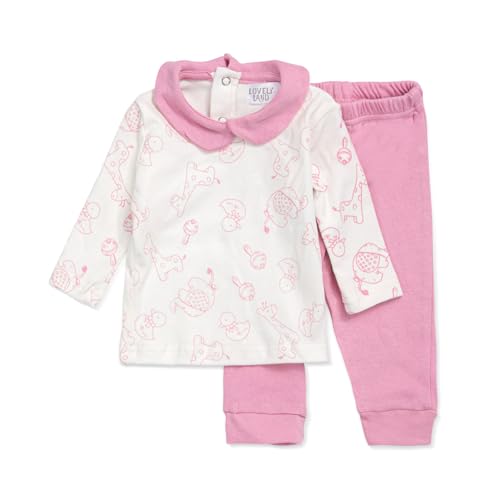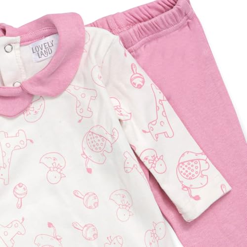 lovely land - طقم بيجامة مكون من قميص ابيض بطبعة كاملة وبنطلون بينك للبنات الصغيرات (عبوة من قطعة واحدة)