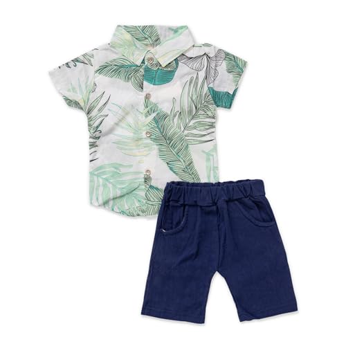 lovely land - طقم قميص للأولاد بأزرار مع زينة وشورت قصير من لافلي لاند، لون أخضر زيتوني