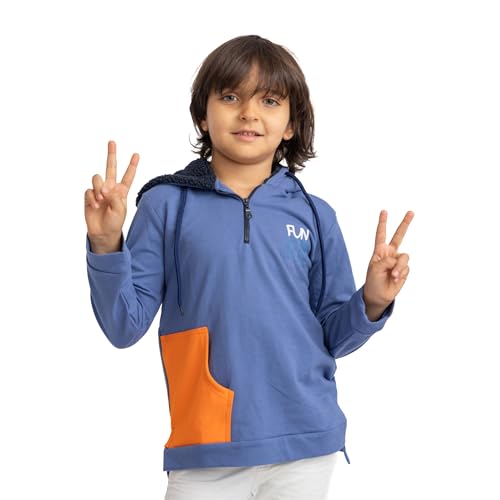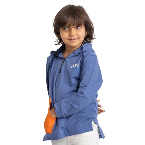 lovely land - lovely land boys blue hoodied sweatshirt with orange decoration Sweatshirt