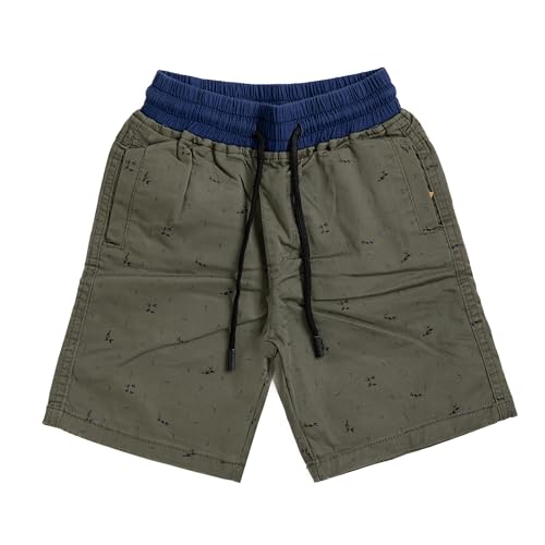 lovely land - شورت للأولاد بلون أخضر زيتوني بخصر بأستك وزينة مطبوعة من لافلي لاند