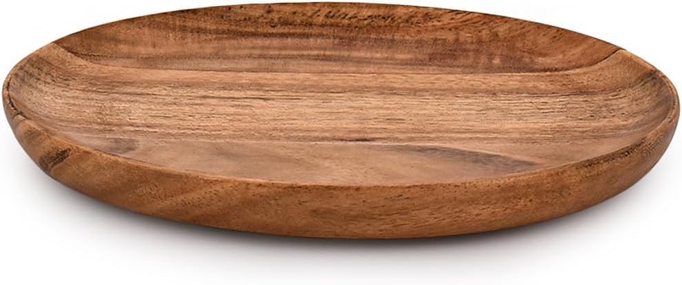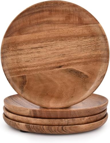 LOVHIDE - مجموعة أطباق خشبية دائرية من خشب الاكاسيا سهلة التنظيف وخفيفة الوزن للأطباق والوجبات الخفيفة والحلويات من لوفهايد، من 4 قطع (18 × 18 × 2.5 سم)