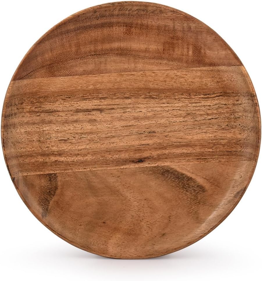 - مجموعة من 4 أطباق خشبية مستديرة مصنوعة من خشب الأكاسيا عالي الجودة.