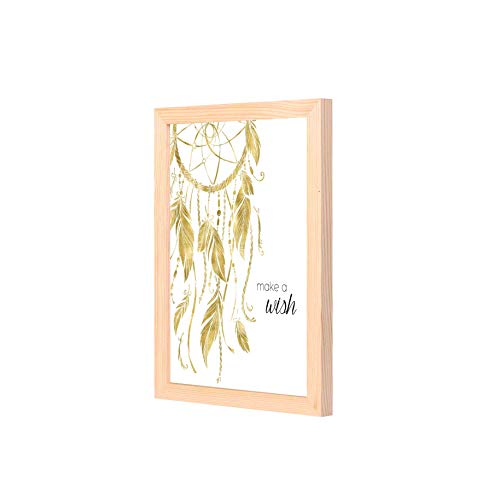 LOWHA - LOWHA Make a wish gold white Wall Art with Pan Wood framed Ready to hang for home , bed room , office living room Home decor hand made wooden color 23 x 33cm By LOWHA