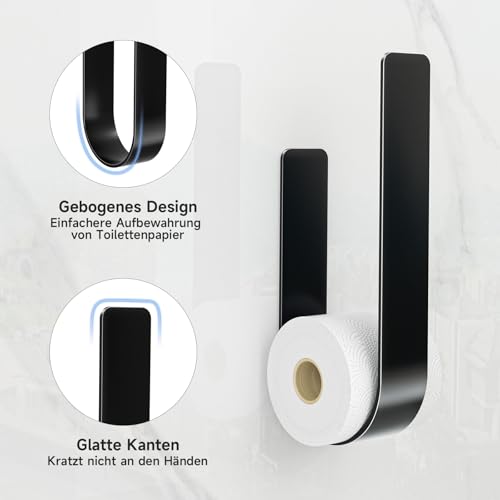 - Space-saving design for wall mounting: the toilet paper holder without drilling is for mounting on your bathroom wall or on the sink, which protects your toilet paper from dirt and moisture. This keeps the paper rolls clean and tidy.