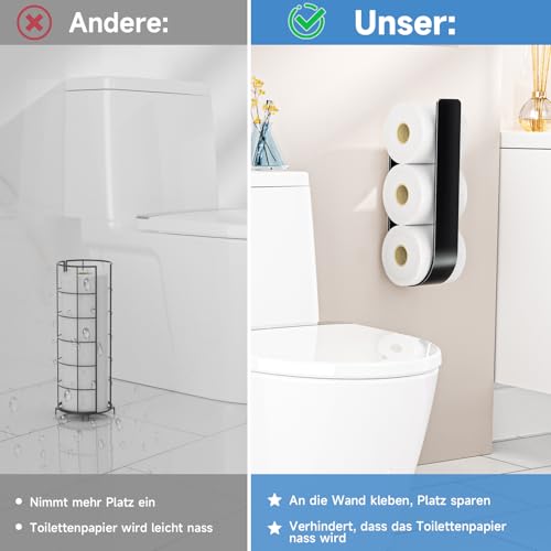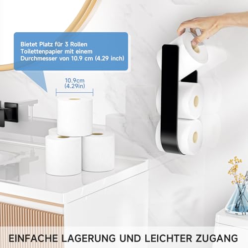- Easy storage: the toilet paper storage black from LOXSUN has a U-shaped design that makes it easier to store and remove toilet paper. Offers space for 3 rolls of toilet paper with a diameter of 4.29 inches.