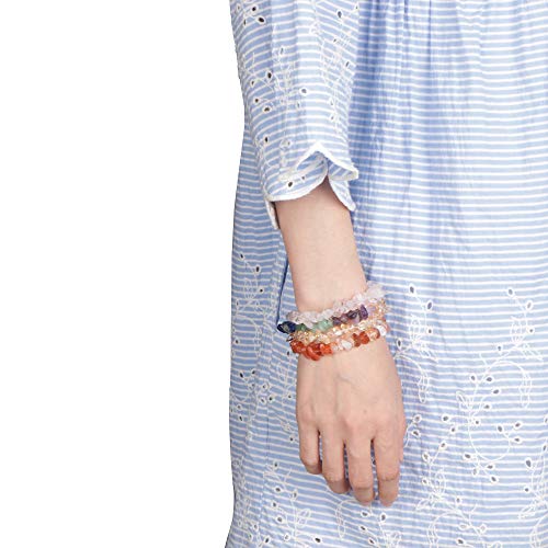 LOYALLOOK - اساور احجار كريمة شاكرا طبيعية، اساور شرائح احجار كريمة علاجية، اساور مرنة من شاكرا مصقول للتغلب علي الخوف/ريكي لزيادة التواصل من لويال لوك، 8-12 قطعة