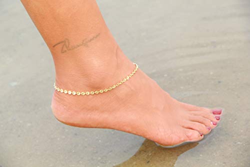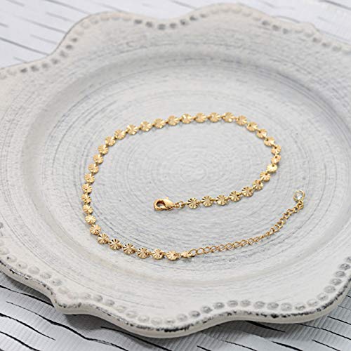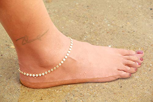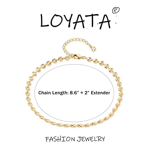 LOYATA - LOYATA Dainty Ankle Bracelet,14K Gold Plated Tiny Bead Anklet Dainty White Cubic Zirconia Cross Tassel Foot Chain Cute Lucky Moon Evil Eye Foot Jewelry Boho Anklets for Women, 8.6inch, Copper
