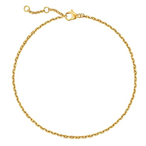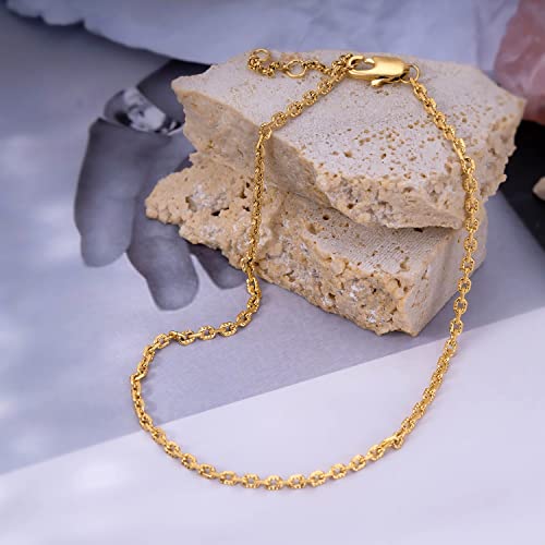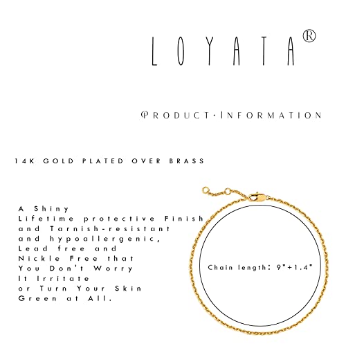 LOYATA - LOYATA Gold Link Anklet for Women 18K Gold Dainty Simple Flat Surface Chain Anklet Delicate Summer Beach Jewelry, 9 inch, Copper, no gemstone