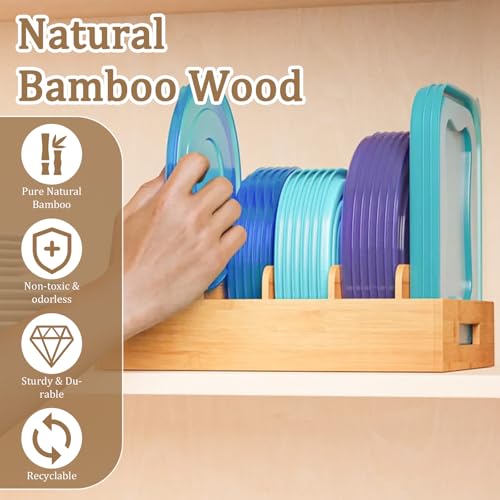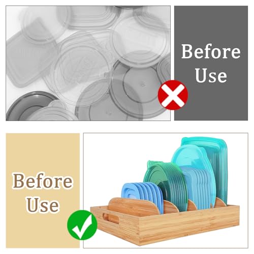 - High-quality bamboo wood material: wooden pot lid storage is made of natural, high-quality bamboo wood, which not only looks beautiful, but also has a high durability and stability. Even with prolonged use, the storage box still retains its good shape and function. Not easily cracked, deformable or damaged.