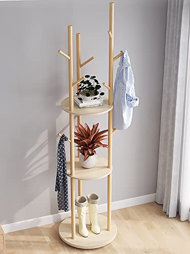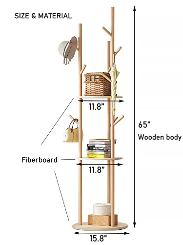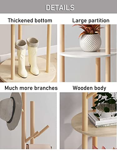 - [Sturdy Wooden&Long-lasting] All support rods are made of high-quality pine wood and 3 round shelves are made of wood plastic composite. The wooden coat rack stand is stable, sturdy and durable. A 15.8in diameter thickened round base and triangular structure enhance balance and stability.