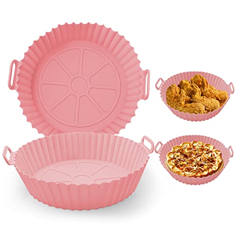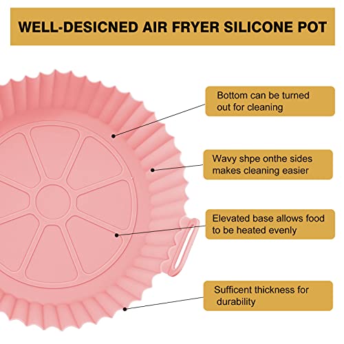 LQSCJS - 2PCS Air Fryer Silicone Pot, 7.5 inch/190mm Reusable Silicone Air Fryer Basket Oven Accessories Round Air Fryer Liners, Reusable Replacement for 3 to 5 Qt for Air Fryer (Pink)
