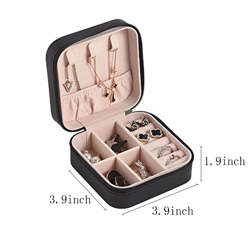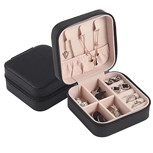 Lseaning - صندوق مجوهرات صغير محمول من ليسينينج، منظم مجوهرات بسحاب للاغلاق، مقاوم للماء، مناسب للسفر والخواتم والقلائد والاقراط هدية للنساء والفتيات (اسود)