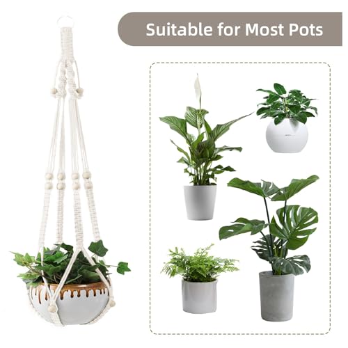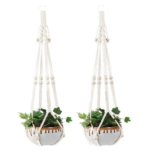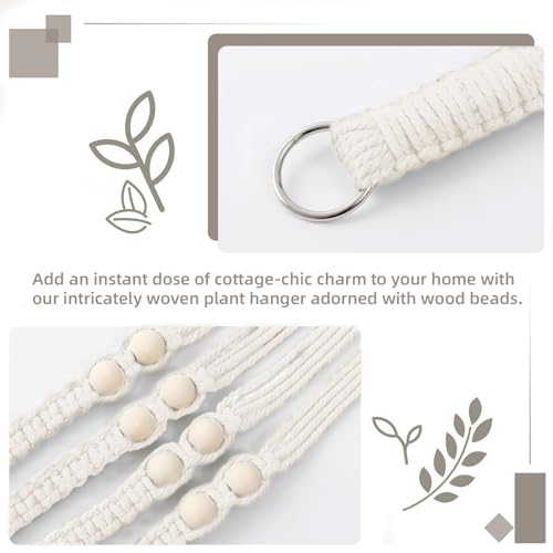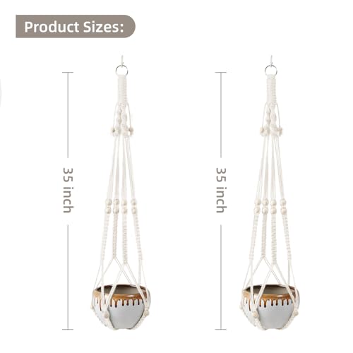 Macrame 2 Pack Plant Hangers,Hanging Planters for Indoor Plants with Hooks, Different Tiers,Handmade Cotton Rope Hanging Planters Set Flower Pots Holder Stand(White)