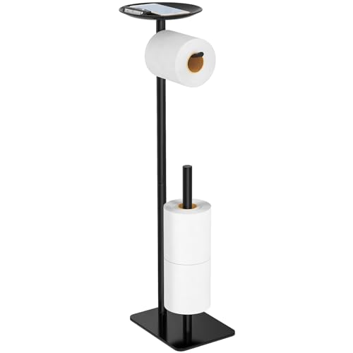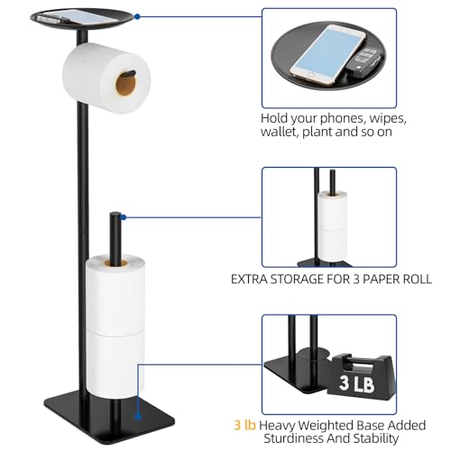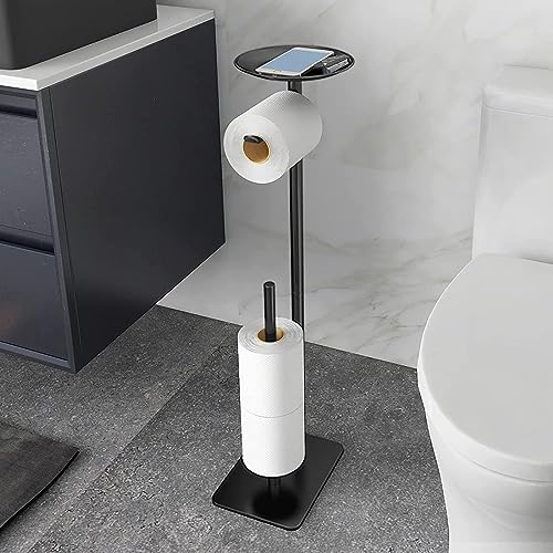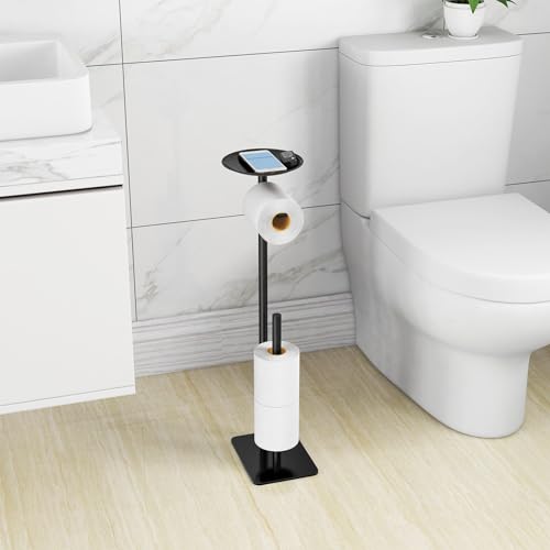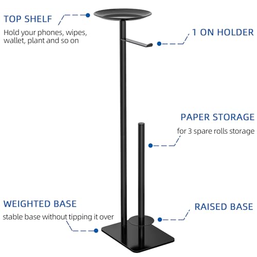 LSK - حامل ورق تواليت قائم بذاته مع احتياطي من ال اس كيه، موزع مناديل الحمام من الستانلس ستيل 304 رف تخزين لفات 4 بكرات كبيرة، مع قاعدة مقاومة للماء والصدأ بتصميم عصري (اسود غير لامع)