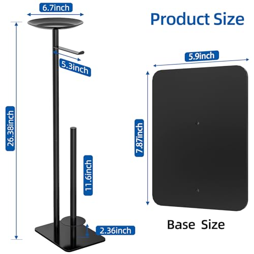 - 🏡【تخزين عملي لورق المرحاض】يبلغ مقاس حامل المناديل 6.7 انش × 6.7 انش × 22.3 انش مما يوفر الكثير من الارتفاع للإمساك به، ويمكن للذراع الذي توضع عليه لفافة ورق المرحاض المستخدمة أن يلتف لأعلى. يمكن لحامل المناديل القائم بذاته ذو السعة الكبيرة تخزين ما يصل إلى ثلاث أربع لفات.
