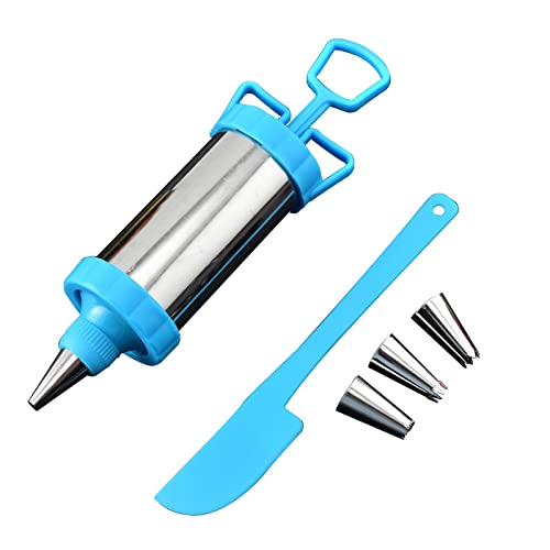 LTLWSH - Icing Syringe and Nozzles Set, Piping Gun with 4 Stainless Steel Tips, Icing Nozzles for Cake Decorating,Blue