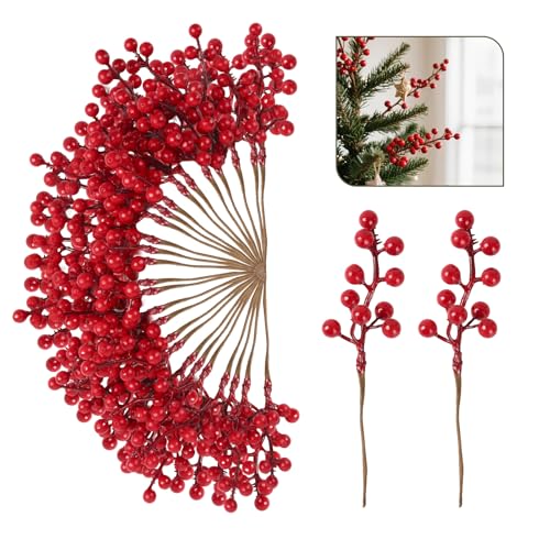 LTSHFZG - زينة شجرة الكريسماس من ال تي اس اتش اف زد جي، 50 قطعة من سيقان التوت الاحمر الاصطناعية لحفلات الكريسماس والشتاء وترتيبات الزهور وقطع مركزية للمنزل والحلي التي تصنعها بنفسك