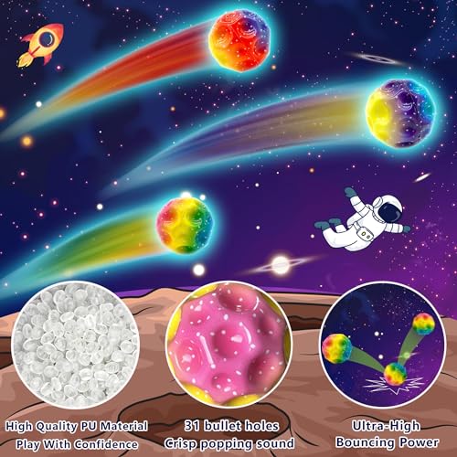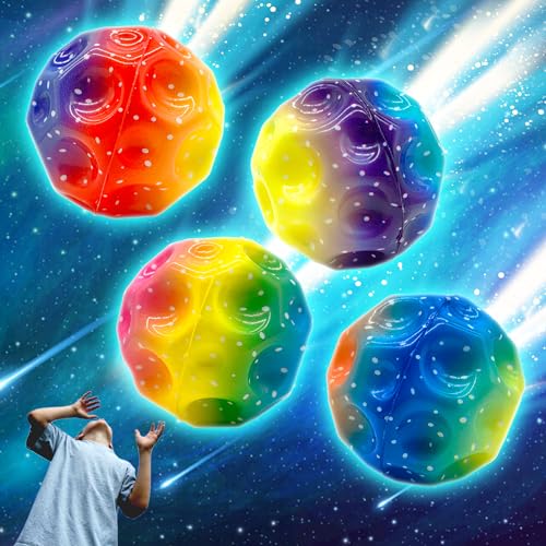 Lubibi - 4 Pcs Astro Jump Ball, Moon Balls, Bouncing Space Ball, Super High Bouncing Bounciest PU Space Ball, Sensory Indoor and Outdoor Toys for Children and Adults