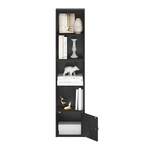 Generic - خزانة كتب مع خزانة تخزين بباب واحد، منظم متعدد الوظائف مع مساحة تخزين مفتوحة ومخفية مصممة بشكل أنيق وتصميم حديث من لودر - أسود